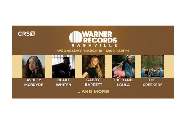 (Nashville, Tennessee — February 26, 2026) — Country Radio Seminar (CRS) has announced the initial talent lineup for the annual Warner Records Nashville Luncheon, scheduled for CRS 2026. This year’s showcase will feature performances from Ashley McBryde, Blake Whiten, Gabby Barrett, The Band Loula, and The Creekers with additional artists to be announced.