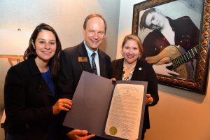 Photo Caption: On Sept. 21, the Office of Mayor Megan Barry issued a proclamation to the Nashville Municipal Auditorium celebrating the 55th Anniversary of the historic venue. Pictured here L to R: Music City Music Council Executive Director, Justine Avila, Nashville Municipal Auditorium Executive Director, Bob Skoney, and Mayor Megan Barry’s Senior Advisor, Claudia Huskey. Photo credit: Jason Davis