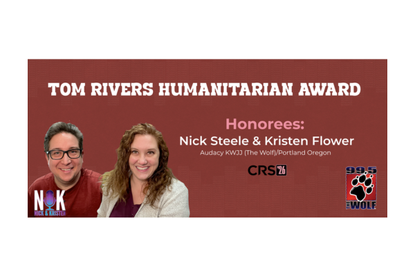 (Nashville, Tennessee — January 20, 2026) — Country Radio Broadcasters, Inc. (CRB) will honor Nick Steele and Kristen Flowers, morning show hosts on Audacy’s 99.5 The Wolf (KWJJ-FM) in Portland, with the Tom Rivers Humanitarian Award during CRS 2026, set for March 18–20 at the Omni Nashville Hotel.