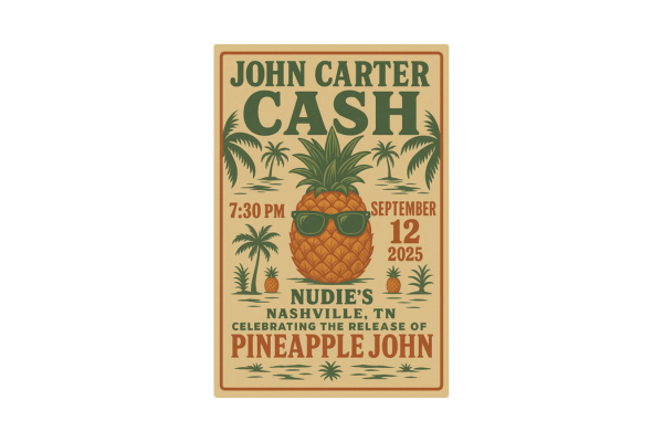 Join acclaimed singer-songwriter and producer John Carter Cash for an unforgettable evening at Nudie’s in Nashville on Friday, September 12, 2025, at 7:30 PM, as he celebrates the release of Pineapple John.